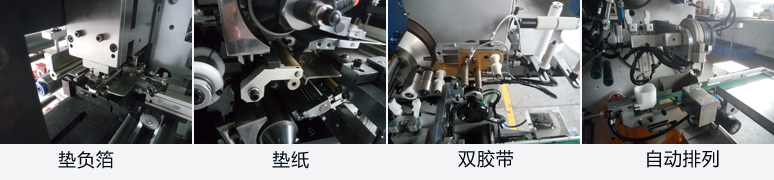 5.本机出机标准功能和配件:垫纸,垫箔,双胶带,各易损件计数,先卷纸,先卷负箔,尾卷负箔,马达正反转,以及自动排列功能。卷绕针为Ø5,齿形为条形。